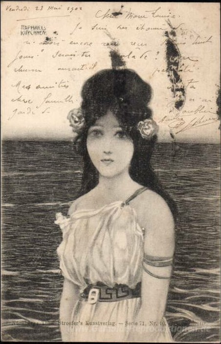 Wir bieten Ihnen eine handgefertigte Reproduktion auf Leinwand des berühmten Kunstwerks 'Griechische Mädchen' von Raphael Kirchner, aus dem Reproduktionsmuseum.