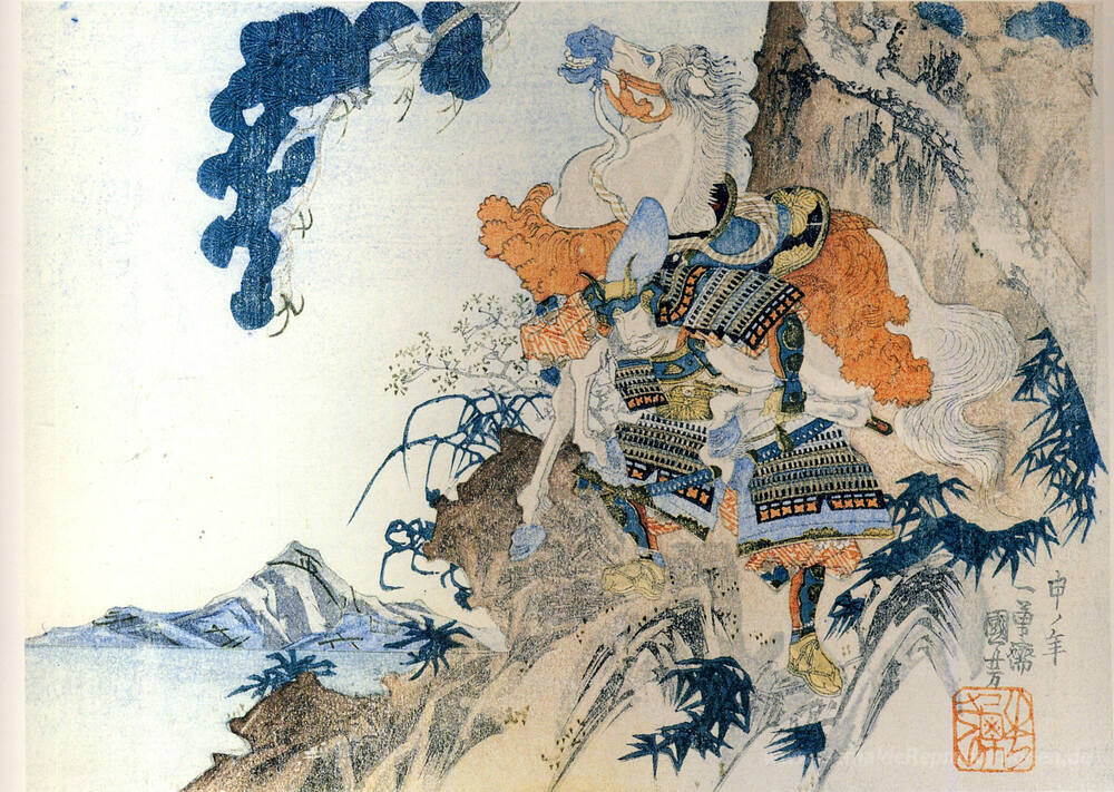 Wir bieten Ihnen eine handgefertigte Reproduktion auf Leinwand des berühmten Kunstwerks 'Hatakeyama Shigetada' von Utagawa Kuniyoshi, aus dem Reproduktionsmuseum.