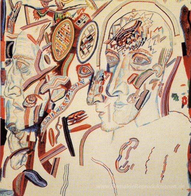 Wir bieten Ihnen eine handgefertigte Reproduktion auf Leinwand des berühmten Kunstwerks 'Heads' von Pavel Filonov, aus dem Reproduktionsmuseum.