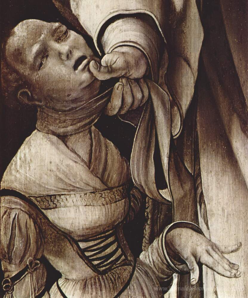 Wir bieten Ihnen eine handgefertigte Reproduktion auf Leinwand des berühmten Kunstwerks 'Heller-Altar (Detail)' von Matthias Grünewald, aus dem Reproduktionsmuseum.