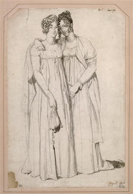 Wir bieten Ihnen eine handgefertigte Reproduktion auf Leinwand des berühmten Kunstwerks 'Henriette Harvey und ihre Halbschwester Elizabeth Norton' von Jean Auguste Dominique Ingres, aus dem Reproduktionsmuseum.