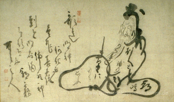 Wir bieten Ihnen eine handgefertigte Reproduktion auf Leinwand des berühmten Kunstwerks 'Hitomaro' von Hakuin Ekaku, aus dem Reproduktionsmuseum.