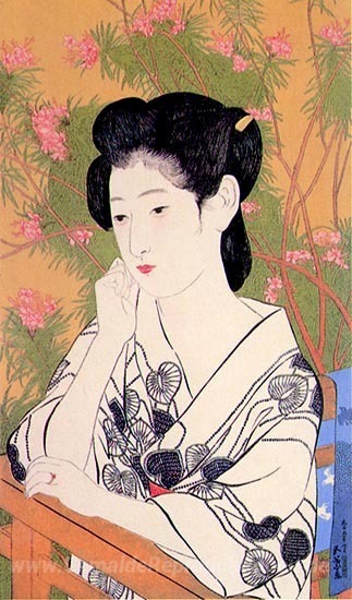 Wir bieten Ihnen eine handgefertigte Reproduktion auf Leinwand des berühmten Kunstwerks 'Hot Spring Hotel' von Goyo Hashiguchi, aus dem Reproduktionsmuseum.