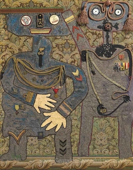 Wir bieten Ihnen eine handgefertigte Reproduktion auf Leinwand des berühmten Kunstwerks 'Il conte Suwrow Rjnniskj con il suo aiutante di campo durante la' von Enrico Baj, aus dem Reproduktionsmuseum.