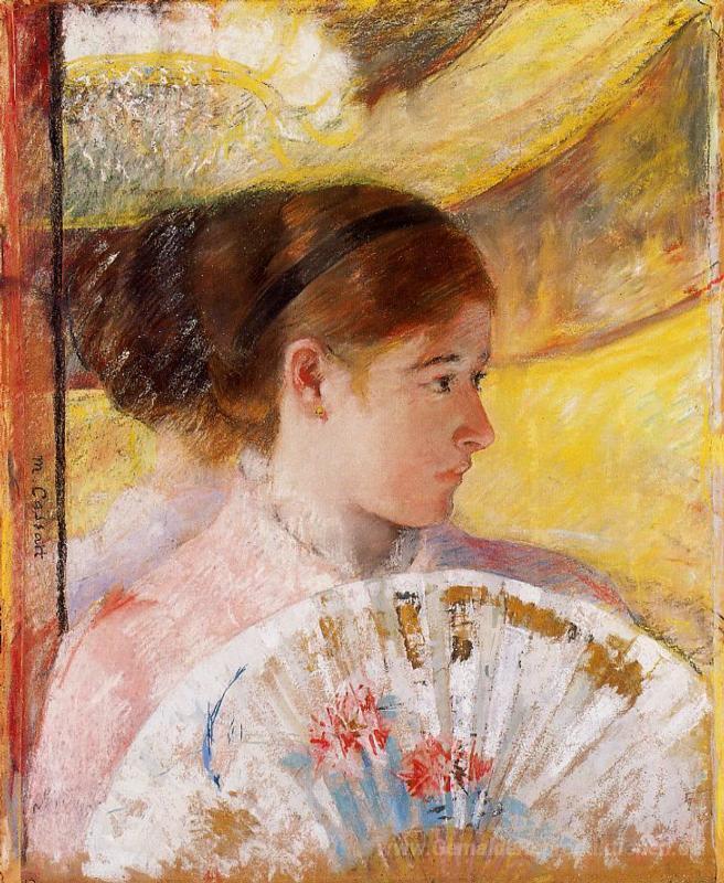 Wir bieten Ihnen eine handgefertigte Reproduktion auf Leinwand des berühmten Kunstwerks 'Im Theater' von Mary Cassatt, aus dem Reproduktionsmuseum.