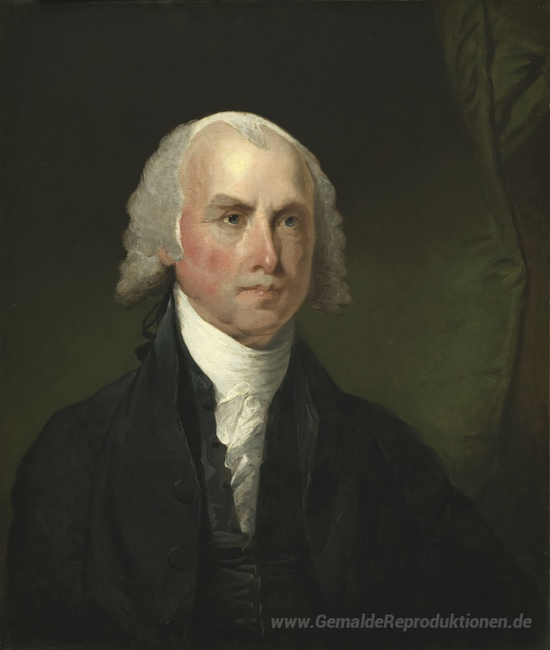 Wir bieten Ihnen eine handgefertigte Reproduktion auf Leinwand des berühmten Kunstwerks 'James Madison' von Gilbert Stuart, aus dem Reproduktionsmuseum.