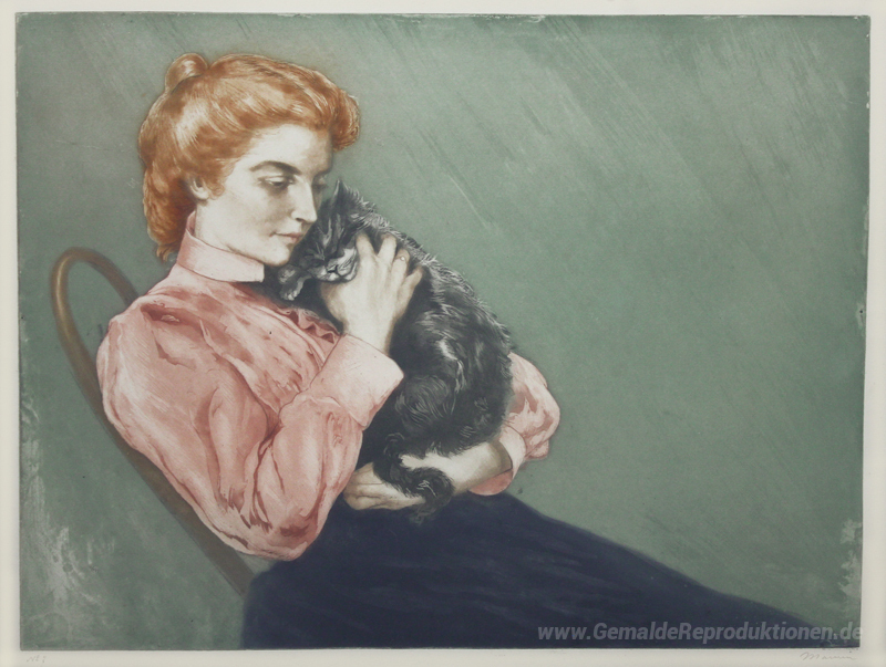 Wir bieten Ihnen eine handgefertigte Reproduktion auf Leinwand des berühmten Kunstwerks 'Jeune Femme Au Chat' von Charles Maurin, aus dem Reproduktionsmuseum.