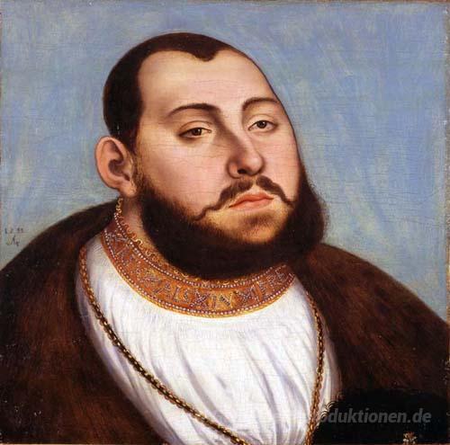 Wir bieten Ihnen eine handgefertigte Reproduktion auf Leinwand des berühmten Kunstwerks 'Johann Friedrich der Großmütige, Kurfürst von Sachsen' von Lucas Cranach the Elder, aus dem Reproduktionsmuseum.