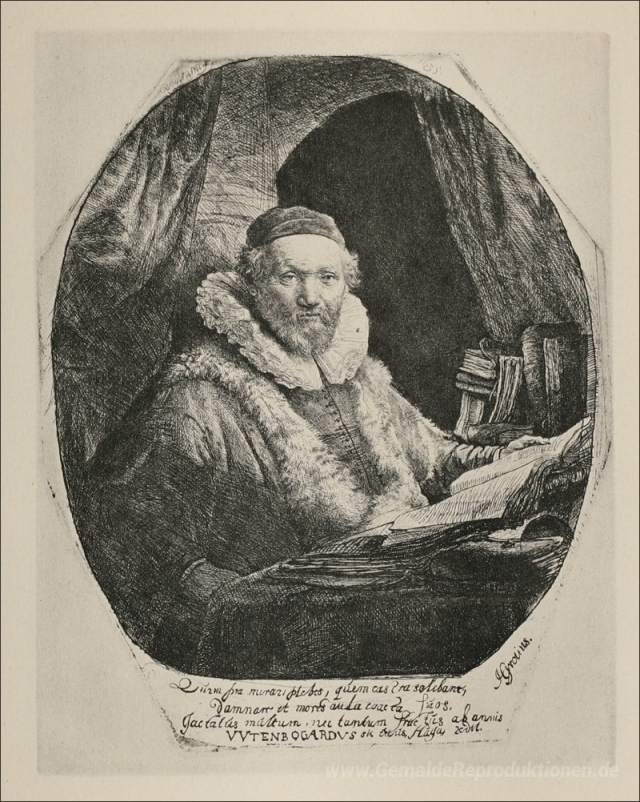 Wir bieten Ihnen eine handgefertigte Reproduktion auf Leinwand des berühmten Kunstwerks 'Johannes Uijtenbodaerd' von Rembrandt, aus dem Reproduktionsmuseum.