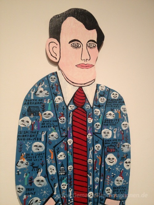 Wir bieten Ihnen eine handgefertigte Reproduktion auf Leinwand des berühmten Kunstwerks 'Jugend von Abraham' von Howard Finster, aus dem Reproduktionsmuseum.