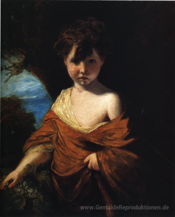 Wir bieten Ihnen eine handgefertigte Reproduktion auf Leinwand des berühmten Kunstwerks 'Junge hält ein Bündel von Trauben' von Joshua Reynolds, aus dem Reproduktionsmuseum.