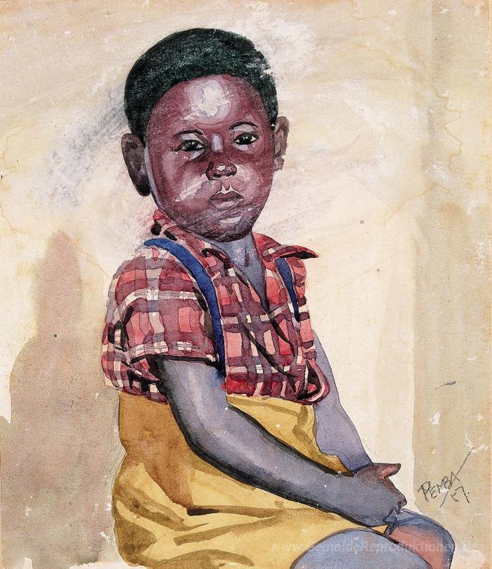 Wir bieten Ihnen eine handgefertigte Reproduktion auf Leinwand des berühmten Kunstwerks 'Junge' von George Pemba, aus dem Reproduktionsmuseum.