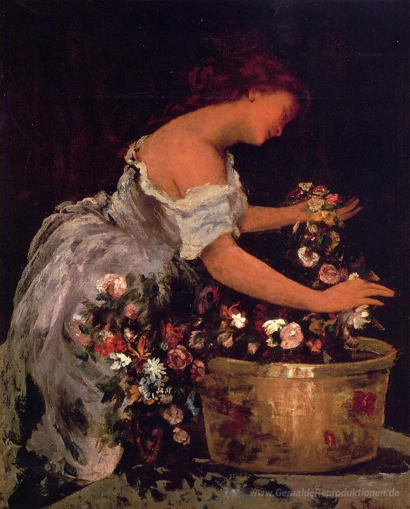Wir bieten Ihnen eine handgefertigte Reproduktion auf Leinwand des berühmten Kunstwerks 'Junges Mädchen, die Blumen verein' von Jehan Georges Vibert, aus dem Reproduktionsmuseum.