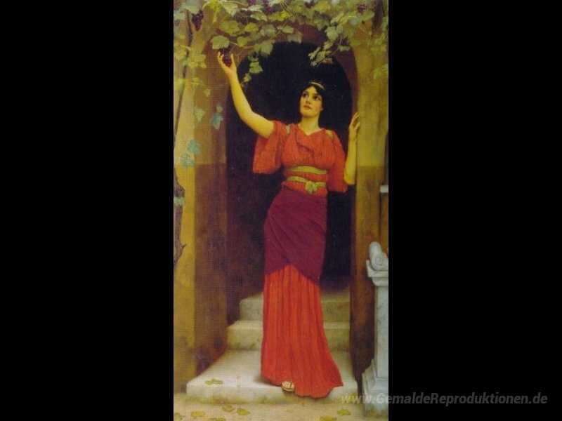 Wir bieten Ihnen eine handgefertigte Reproduktion auf Leinwand des berühmten Kunstwerks 'Junges Mädchen Kommissionierung Trauben' von John William Godward, aus dem Reproduktionsmuseum.
