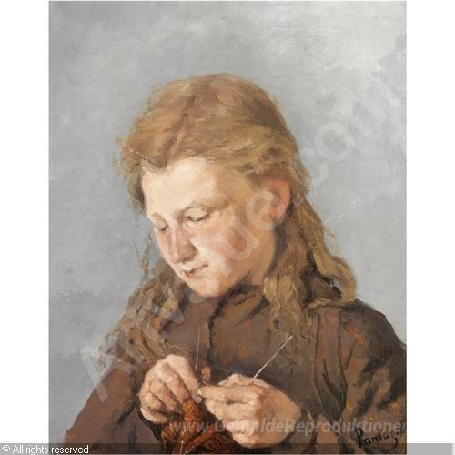 Wir bieten Ihnen eine handgefertigte Reproduktion auf Leinwand des berühmten Kunstwerks 'Junges Mädchen Strick' von Pericles Pantazis , aus dem Reproduktionsmuseum.