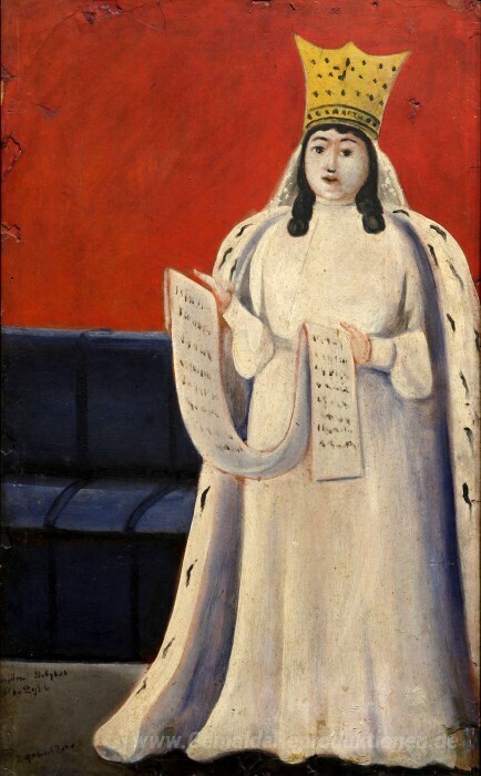 Wir bieten Ihnen eine handgefertigte Reproduktion auf Leinwand des berühmten Kunstwerks 'Königin Tamar von Georgien' von Niko Pirosmani, aus dem Reproduktionsmuseum.