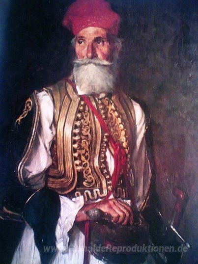 Wir bieten Ihnen eine handgefertigte Reproduktion auf Leinwand des berühmten Kunstwerks 'Kapitän Ben' von Polychronis Lembesis, aus dem Reproduktionsmuseum.