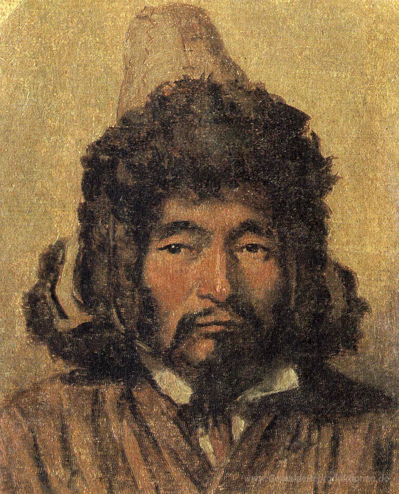 Wir bieten Ihnen eine handgefertigte Reproduktion auf Leinwand des berühmten Kunstwerks 'Kasachisch mit Pelzmütze' von Vasily Vereshchagin, aus dem Reproduktionsmuseum.