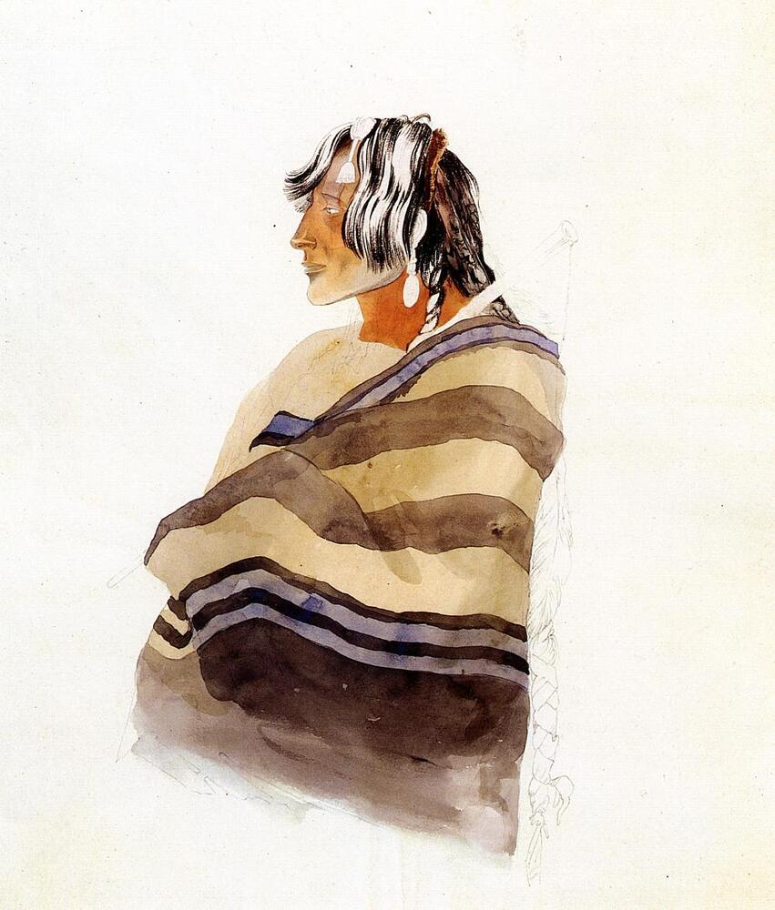 Wir bieten Ihnen eine handgefertigte Reproduktion auf Leinwand des berühmten Kunstwerks 'Kiasax ein Piegen Blackfeet-Krieger' von Karl Bodmer, aus dem Reproduktionsmuseum.
