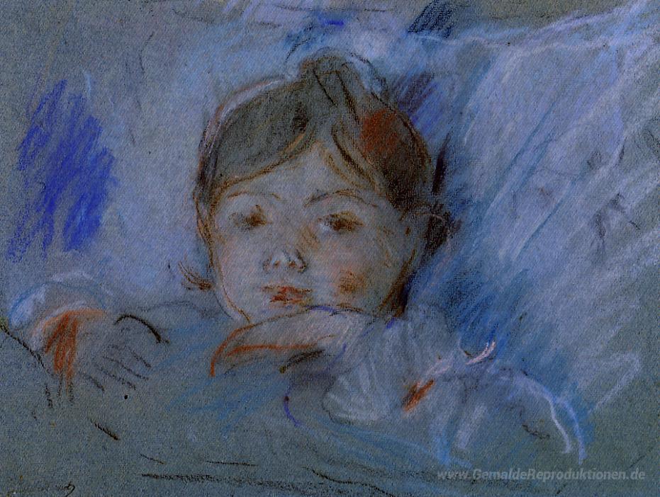 Wir bieten Ihnen eine handgefertigte Reproduktion auf Leinwand des berühmten Kunstwerks 'Kind im Bett' von Berthe Morisot, aus dem Reproduktionsmuseum.