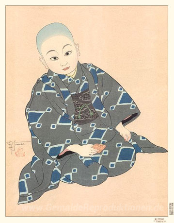 Wir bieten Ihnen eine handgefertigte Reproduktion auf Leinwand des berühmten Kunstwerks 'Kiyoshi. Tokio' von Paul Jacoulet, aus dem Reproduktionsmuseum.