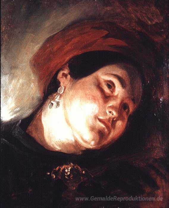 Wir bieten Ihnen eine handgefertigte Reproduktion auf Leinwand des berühmten Kunstwerks 'Kopf einer Frau in einem roten Turban' von Eugene Delacroix, aus dem Reproduktionsmuseum.