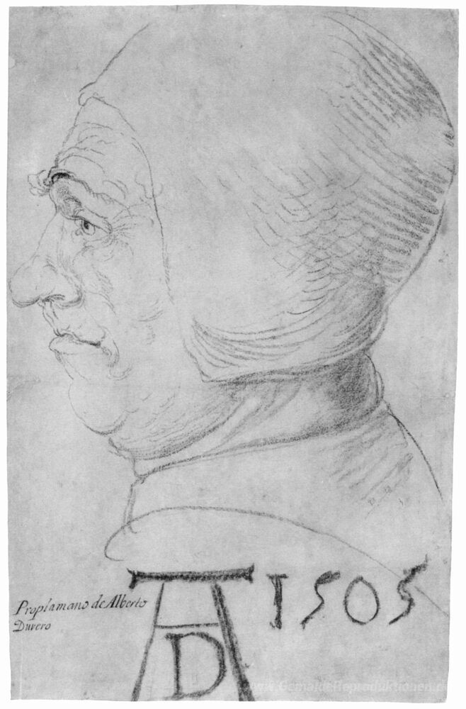Wir bieten Ihnen eine handgefertigte Reproduktion auf Leinwand des berühmten Kunstwerks 'Kopf eines alten Mannes im Profil' von Albrecht Durer, aus dem Reproduktionsmuseum.