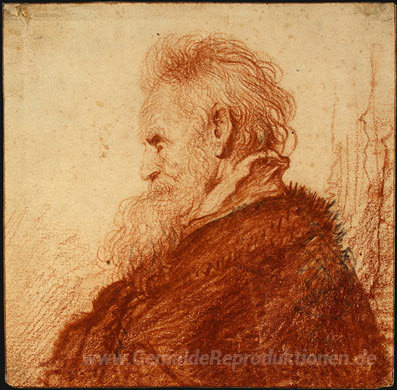 Wir bieten Ihnen eine handgefertigte Reproduktion auf Leinwand des berühmten Kunstwerks 'Kopf eines alten Mannes' von Rembrandt, aus dem Reproduktionsmuseum.