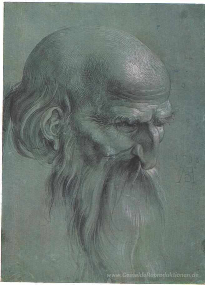 Wir bieten Ihnen eine handgefertigte Reproduktion auf Leinwand des berühmten Kunstwerks 'Kopf eines Apostels' von Albrecht Durer, aus dem Reproduktionsmuseum.