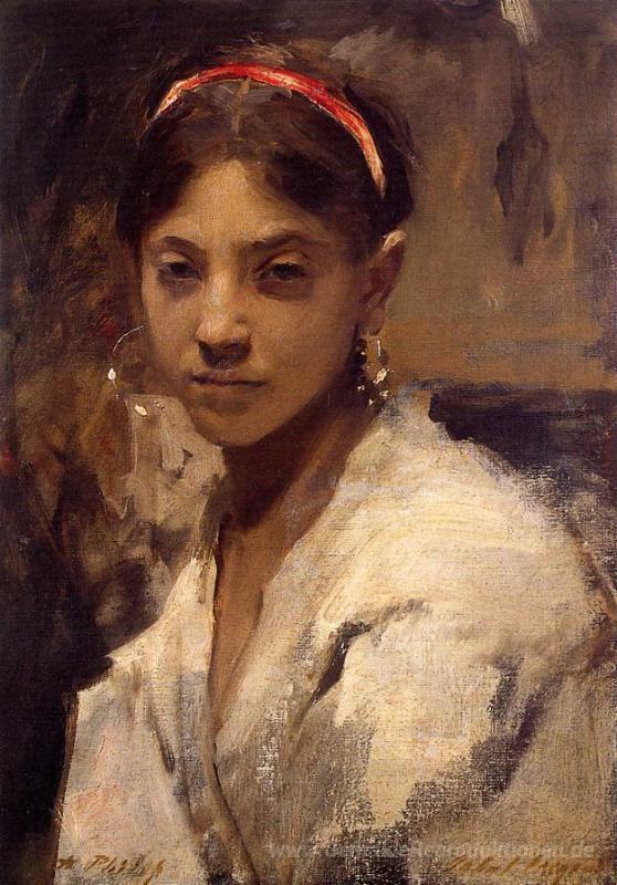 Wir bieten Ihnen eine handgefertigte Reproduktion auf Leinwand des berühmten Kunstwerks 'Kopf eines Capri Mädchens' von John Singer Sargent, aus dem Reproduktionsmuseum.