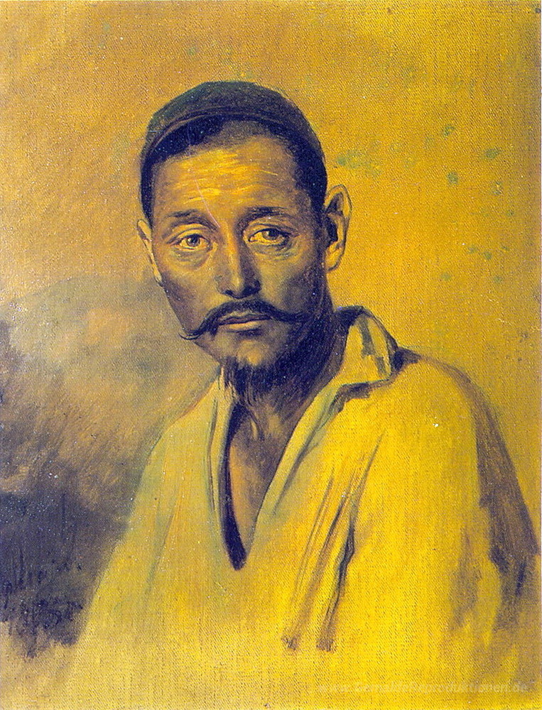 Wir bieten Ihnen eine handgefertigte Reproduktion auf Leinwand des berühmten Kunstwerks 'Kopf eines Kirgisen. Studie für "The Court Pugachev"' von Vasily Perov, aus dem Reproduktionsmuseum.