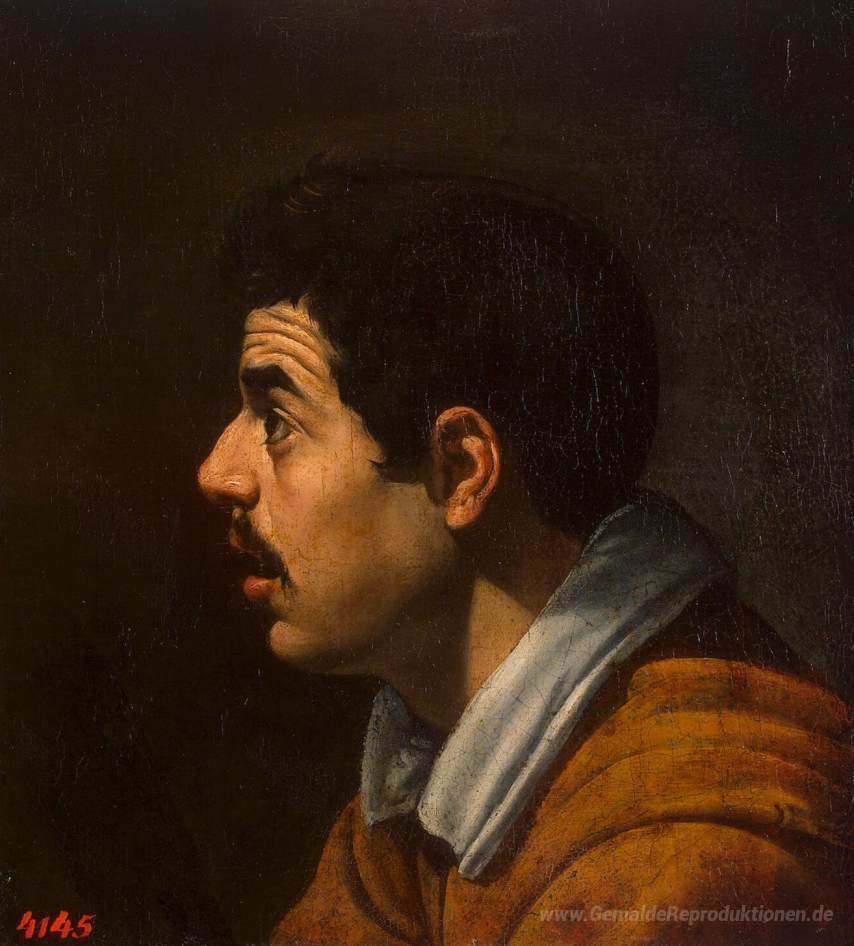 Wir bieten Ihnen eine handgefertigte Reproduktion auf Leinwand des berühmten Kunstwerks 'Kopf eines Mannes' von Diego Velazquez, aus dem Reproduktionsmuseum.