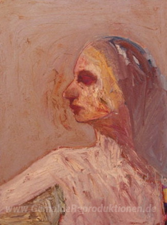 Wir bieten Ihnen eine handgefertigte Reproduktion auf Leinwand des berühmten Kunstwerks 'Kopf' von Nathan Oliveira, aus dem Reproduktionsmuseum.