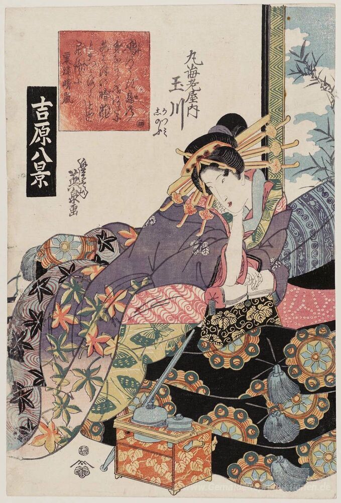 Wir bieten Ihnen eine handgefertigte Reproduktion auf Leinwand des berühmten Kunstwerks 'Löschen Wetter am Awazu (Awazu seiran), Tamagawa der Maru-Ebiya,' von Keisai Eisen, aus dem Reproduktionsmuseum.