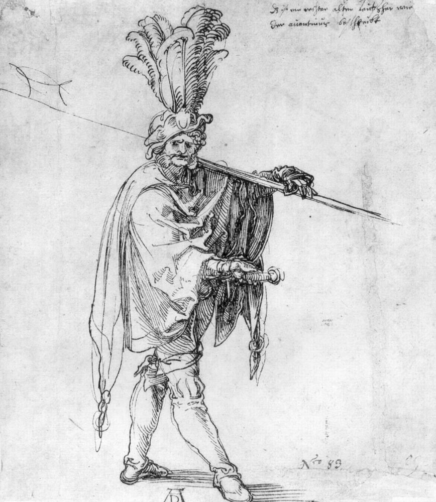 Wir bieten Ihnen eine handgefertigte Reproduktion auf Leinwand des berühmten Kunstwerks 'Landsknecht' von Albrecht Durer, aus dem Reproduktionsmuseum.