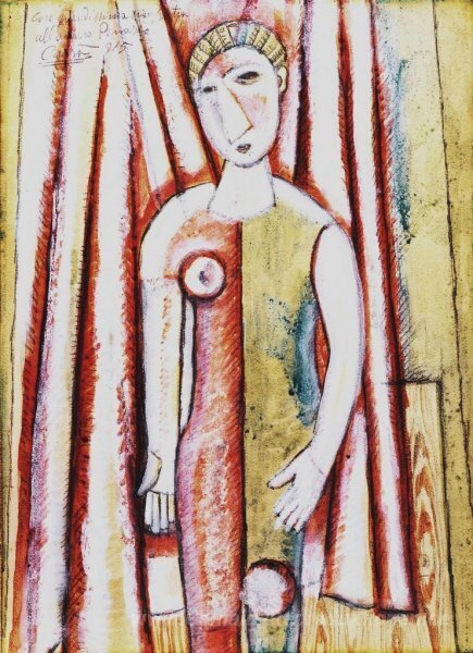 Wir bieten Ihnen eine handgefertigte Reproduktion auf Leinwand des berühmten Kunstwerks 'L'attrice futurista' von Carlo Carra, aus dem Reproduktionsmuseum.