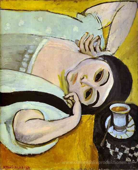Wir bieten Ihnen eine handgefertigte Reproduktion auf Leinwand des berühmten Kunstwerks 'Laurette Kopf mit einer Tasse Kaffee' von Henri Matisse, aus dem Reproduktionsmuseum.
