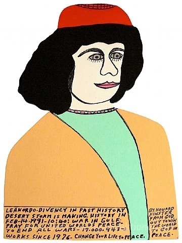 Wir bieten Ihnen eine handgefertigte Reproduktion auf Leinwand des berühmten Kunstwerks 'Leonardo da Vinci' von Howard Finster, aus dem Reproduktionsmuseum.