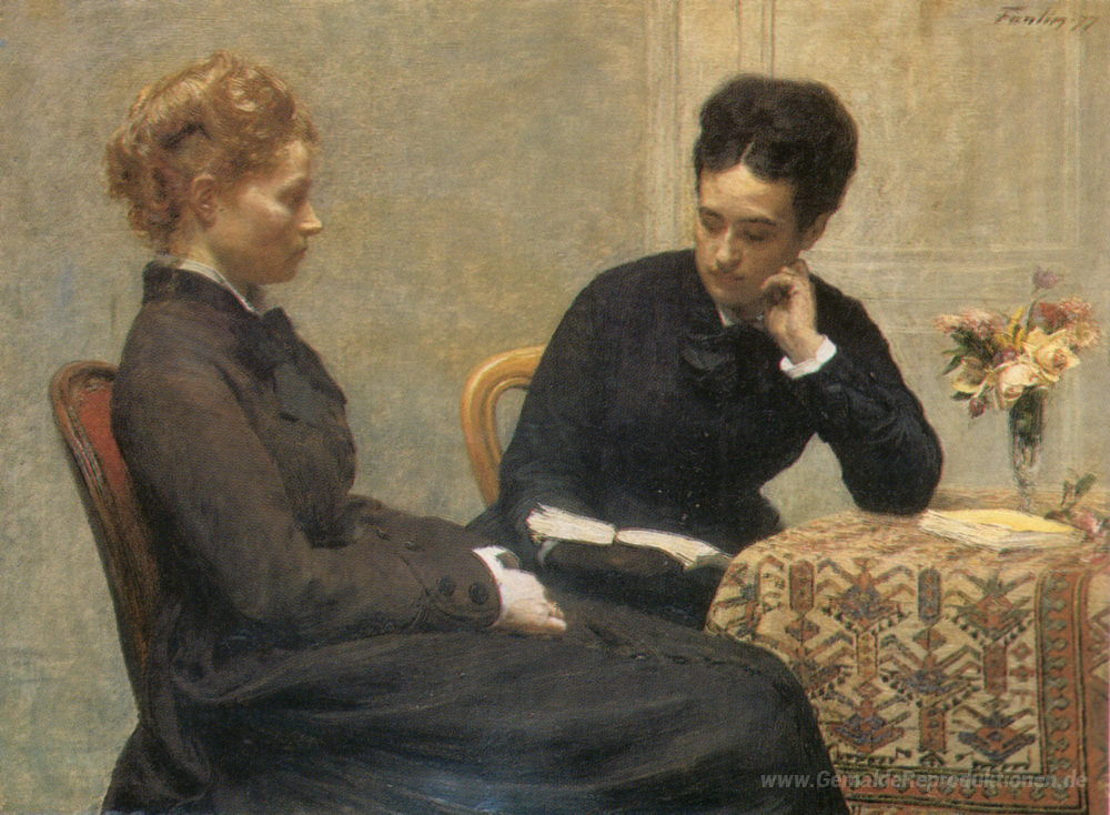 Wir bieten Ihnen eine handgefertigte Reproduktion auf Leinwand des berühmten Kunstwerks 'Lesen' von Henri Fantin-Latour, aus dem Reproduktionsmuseum.
