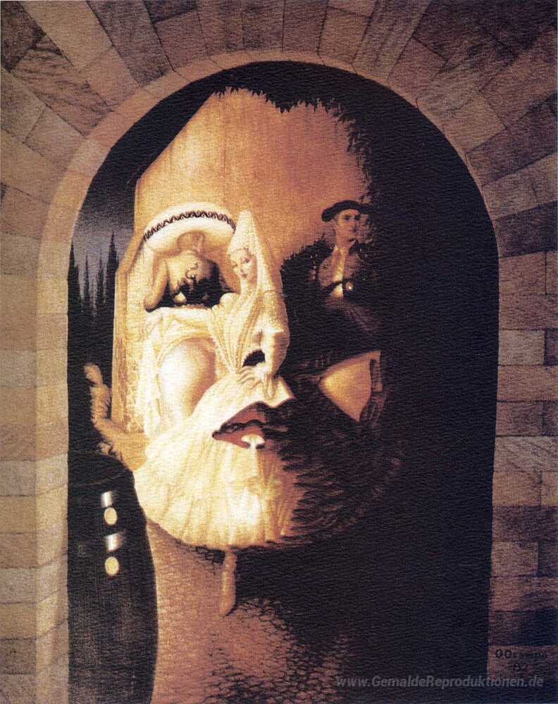 Wir bieten Ihnen eine handgefertigte Reproduktion auf Leinwand des berühmten Kunstwerks 'Lupe' von Octavio Ocampo, aus dem Reproduktionsmuseum.