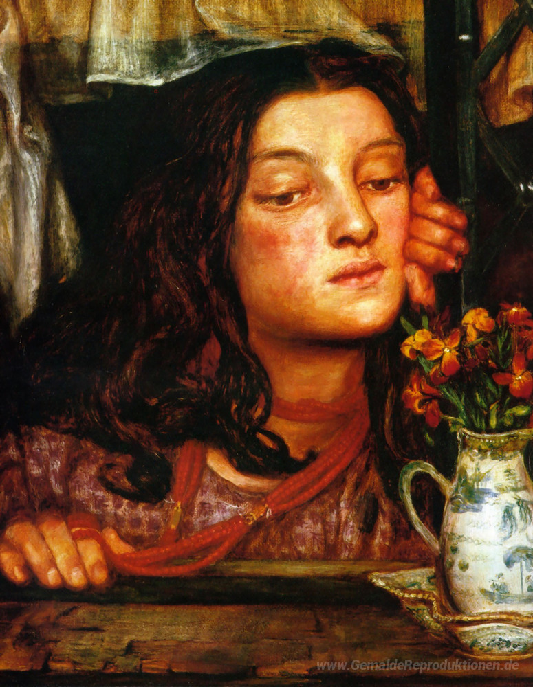 Wir bieten Ihnen eine handgefertigte Reproduktion auf Leinwand des berühmten Kunstwerks 'Mädchen an einem Gitter' von Dante Gabriel Rossetti, aus dem Reproduktionsmuseum.