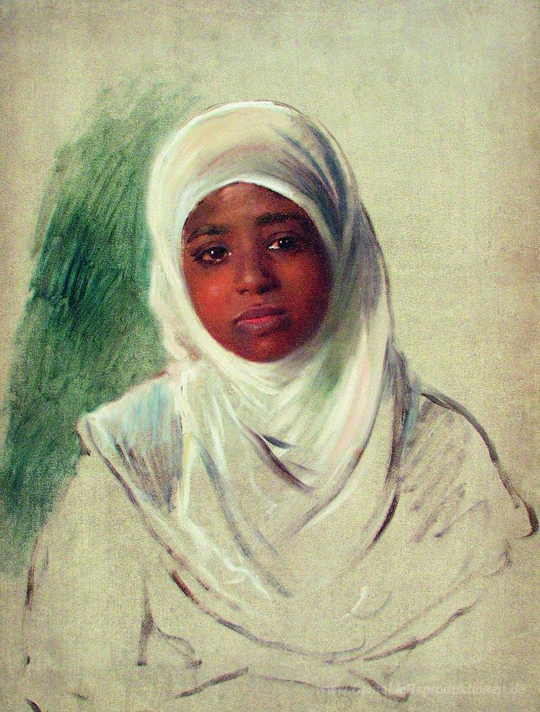 Wir bieten Ihnen eine handgefertigte Reproduktion auf Leinwand des berühmten Kunstwerks 'Mädchen im Burnus' von Konstantin Makovsky, aus dem Reproduktionsmuseum.