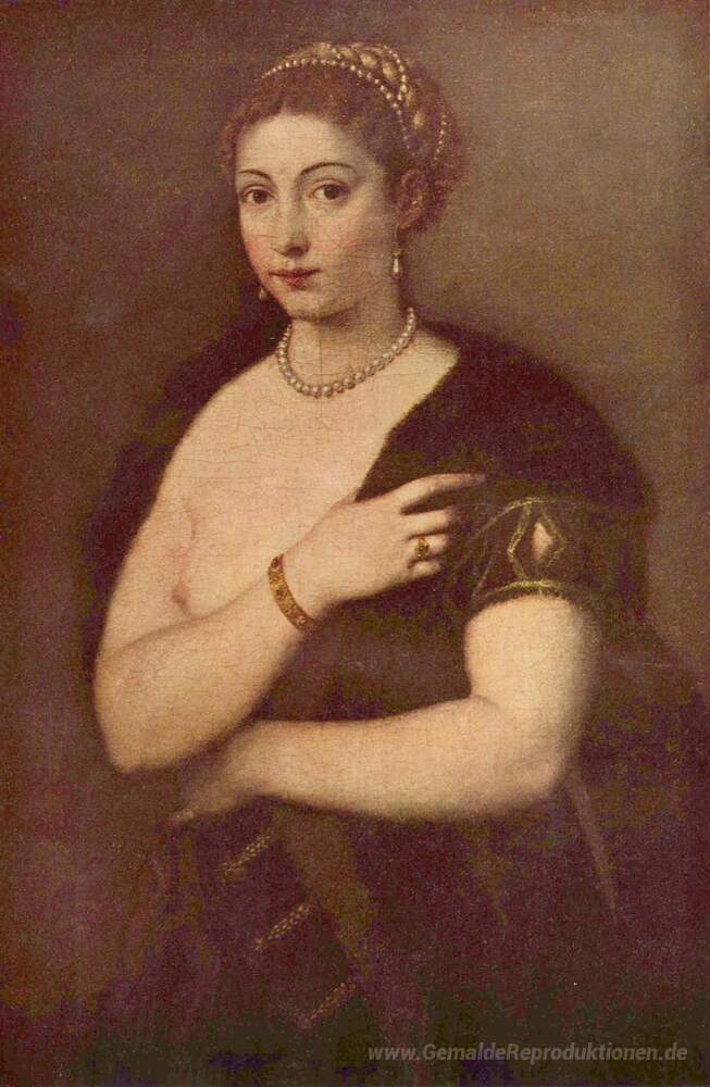 Wir bieten Ihnen eine handgefertigte Reproduktion auf Leinwand des berühmten Kunstwerks 'Mädchen im Pelz (Porträt einer Frau)' von Titian, aus dem Reproduktionsmuseum.