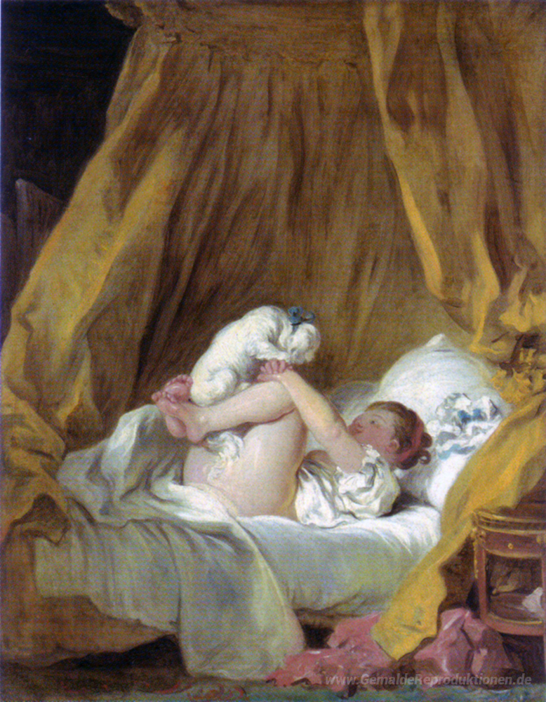Wir bieten Ihnen eine handgefertigte Reproduktion auf Leinwand des berühmten Kunstwerks 'Mädchen mit einem Hund' von Jean-Honore Fragonard, aus dem Reproduktionsmuseum.