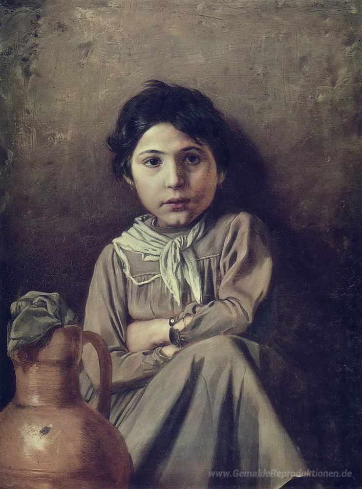 Wir bieten Ihnen eine handgefertigte Reproduktion auf Leinwand des berühmten Kunstwerks 'Mädchen mit einem Krug' von Vasily Perov, aus dem Reproduktionsmuseum.