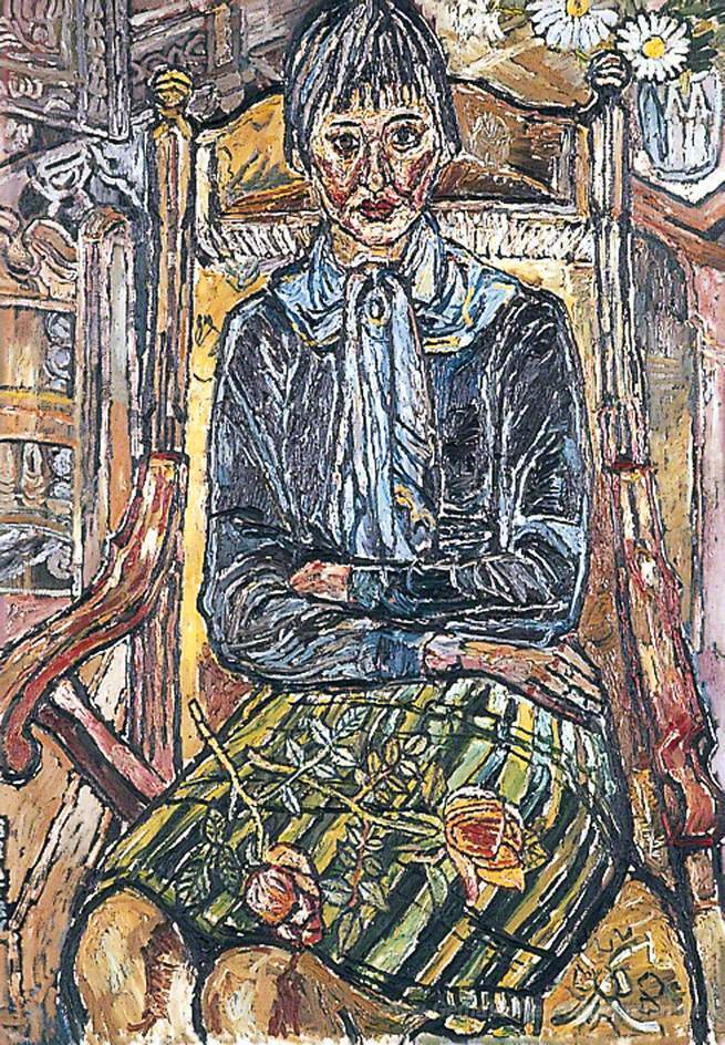 Wir bieten Ihnen eine handgefertigte Reproduktion auf Leinwand des berühmten Kunstwerks 'Mädchen mit einer Rose auf dem Schoß' von John Bratby, aus dem Reproduktionsmuseum.