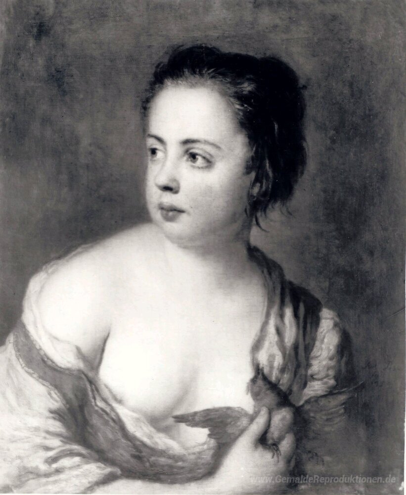 Wir bieten Ihnen eine handgefertigte Reproduktion auf Leinwand des berühmten Kunstwerks 'Mädchen mit einer Taube' von Antoine Pesne, aus dem Reproduktionsmuseum.