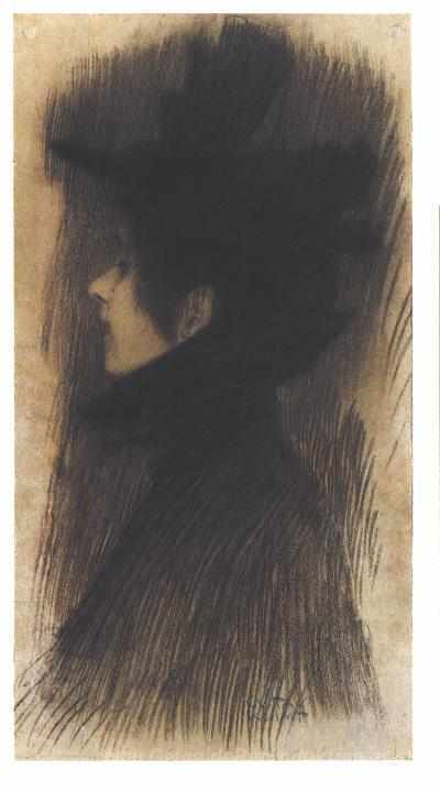 Wir bieten Ihnen eine handgefertigte Reproduktion auf Leinwand des berühmten Kunstwerks 'Mädchen mit Hut und Umhang in profil' von Gustav Klimt, aus dem Reproduktionsmuseum.