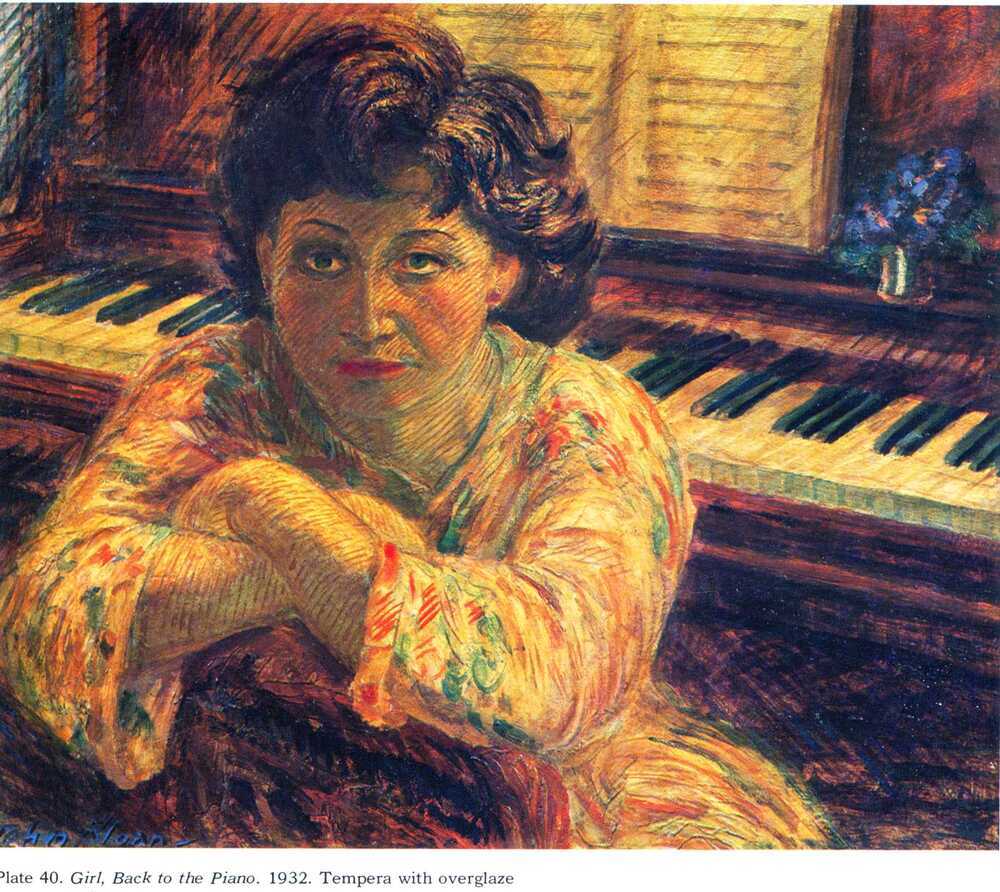 Wir bieten Ihnen eine handgefertigte Reproduktion auf Leinwand des berühmten Kunstwerks 'Mädchen, Zum Piano' von John French Sloan, aus dem Reproduktionsmuseum.