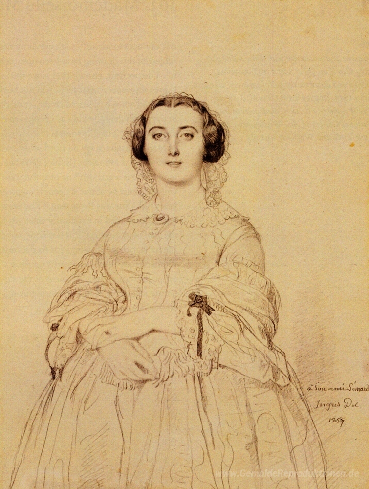 Wir bieten Ihnen eine handgefertigte Reproduktion auf Leinwand des berühmten Kunstwerks 'Madame Charles Simart, geboren Amélie Baltard' von Jean Auguste Dominique Ingres, aus dem Reproduktionsmuseum.